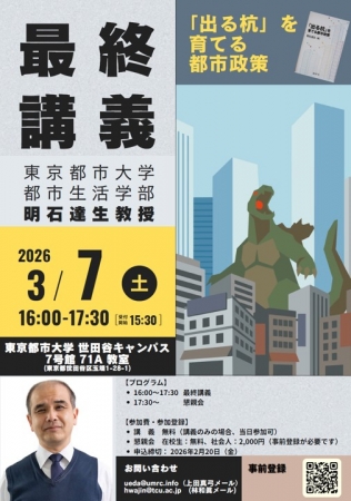 最終講義のご案内(明石達生教授 「出る杭」を育てる都市政策)