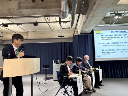 今後の水素社会にご関心のある60名程度の方にお集まりいただき、経済産業省、川崎重工業、三菱ふそうトラック・バス、日本水素ステーションネットワーク、本学からお取組みと現状の課題等について発表を行いました。
